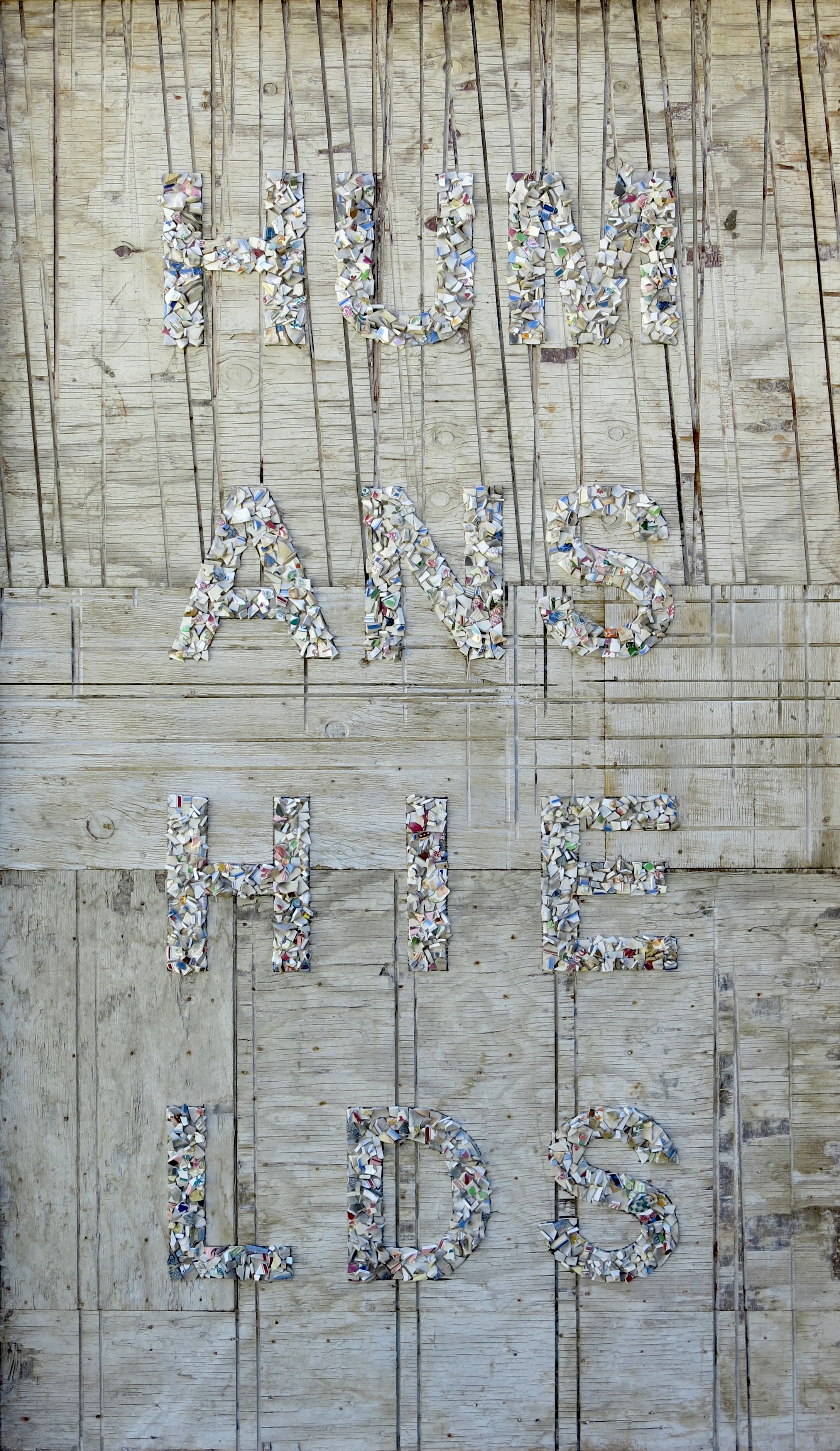 Text: ‘HUMAN SHIELDS’ broken-up and formatted as HUM; ANS; HIE; LDS