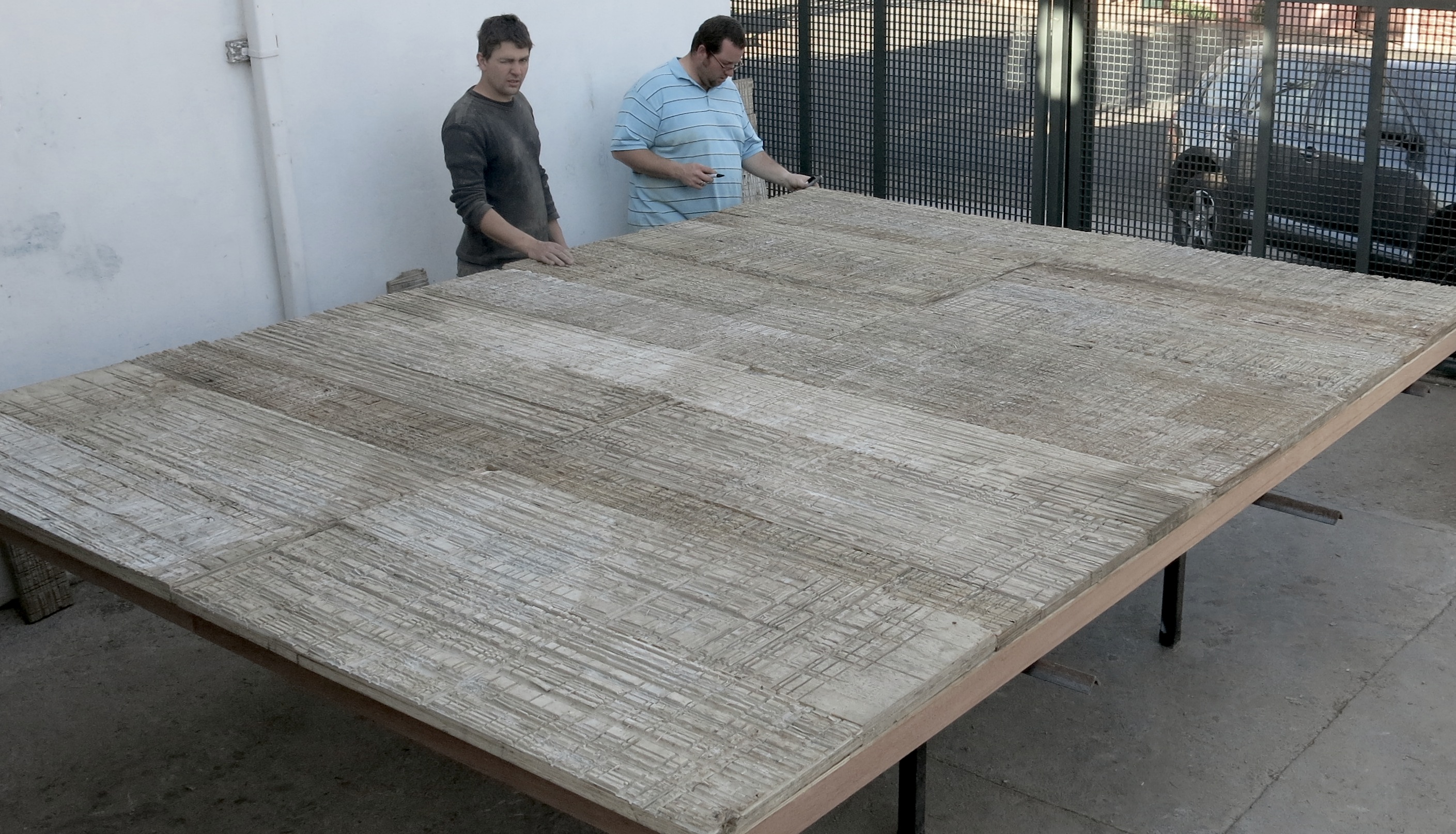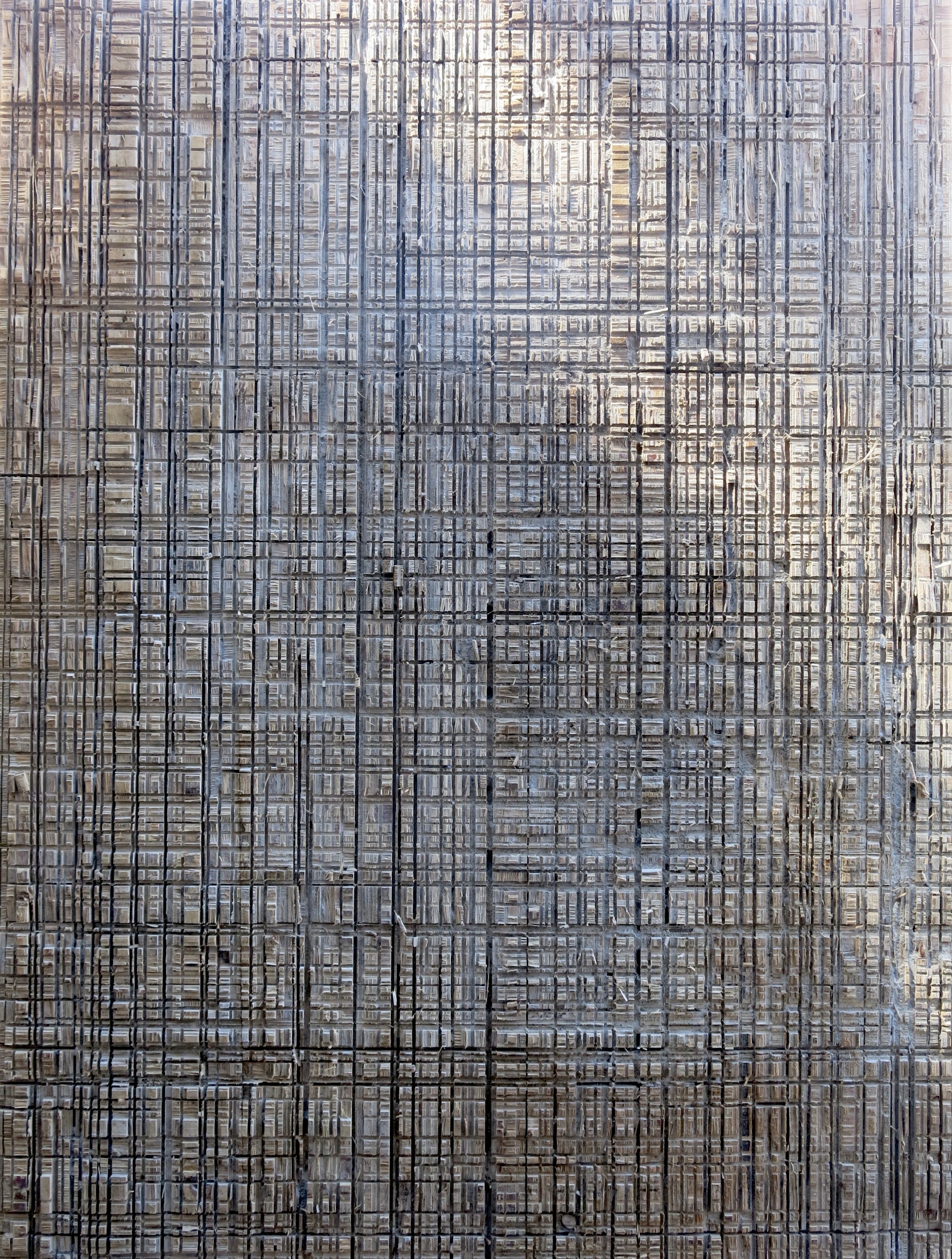 Medium: Scarred plywood boards, once used for the cutting of slabs of granite