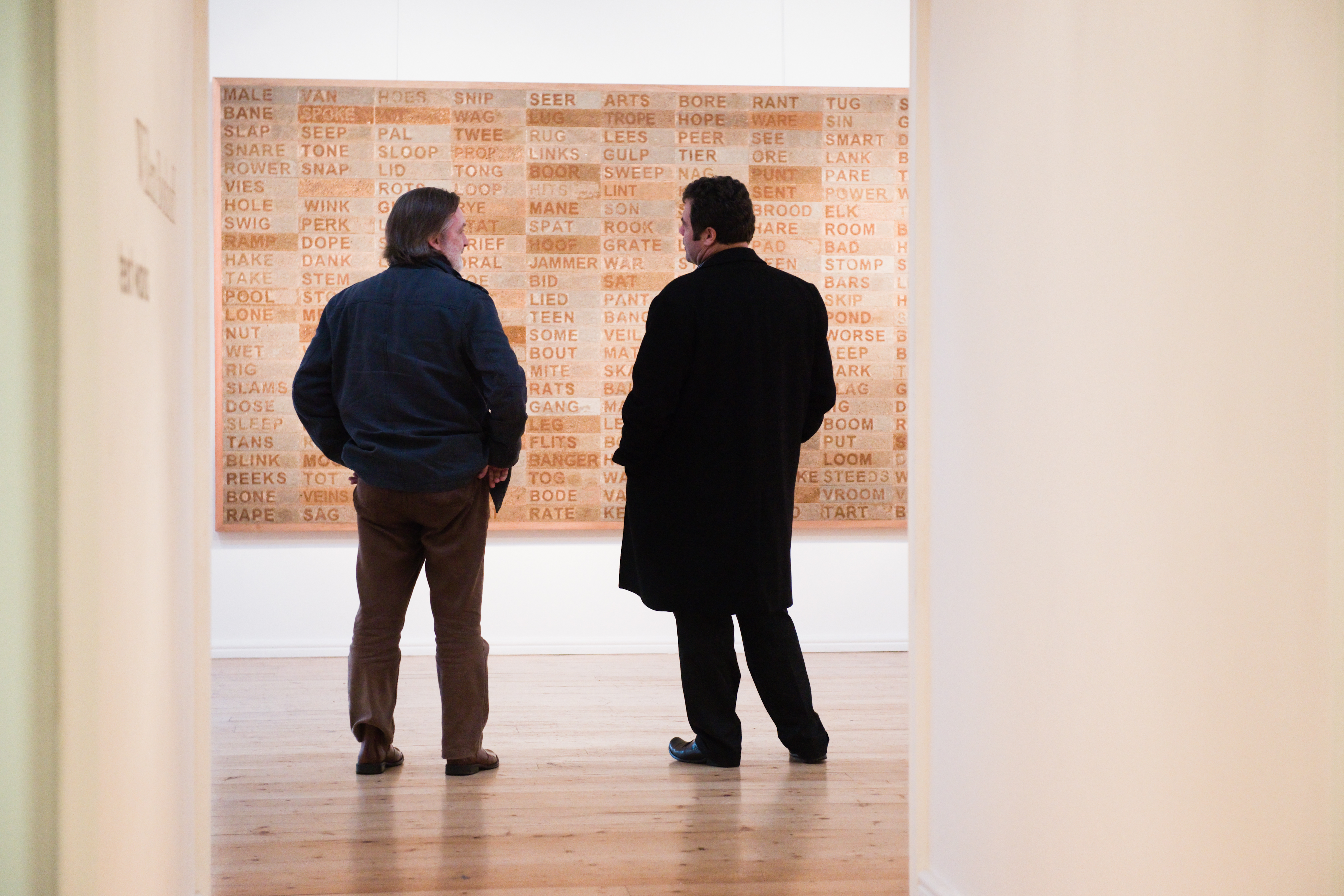 Two shades of sand from the town of Darling, Western Cape province; plywood, wood glue, wood stainer